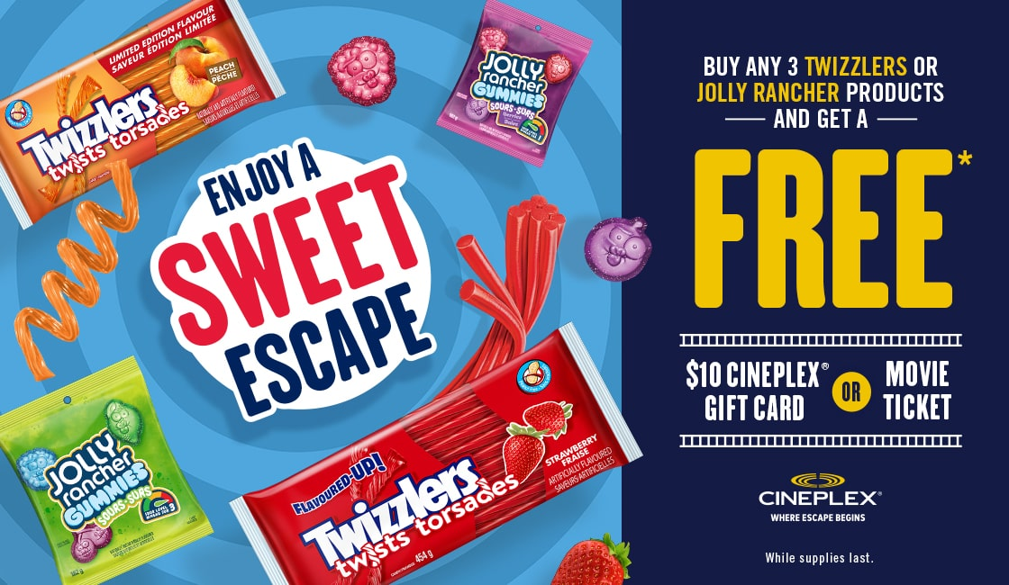 To drive product purchases and strategically align Twizzlers as the go-to snack for movie-goers across Canada, Hershey partnered with Cineplex to launch the “Sweet Escape Buy/Get”, rewarding Cineplex gift cards and movie tickets for qualifying purchases.